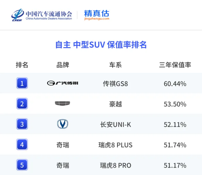 最后是“心理上的稳” 。当下新车迭代速度极快,很多车开一年就成了老款,二手车保值率崩盘。而传祺GS8作为广汽传祺的旗舰SUV,保值率常年霸榜自主品牌中型SUV榜单。对于求稳的消费者来说,买车不是买股票,他们不指望升值,只希望卖掉的时候别“腰斩”。而12万多的入手价,本身就已经压缩了贬值空间,怎么算都划算。