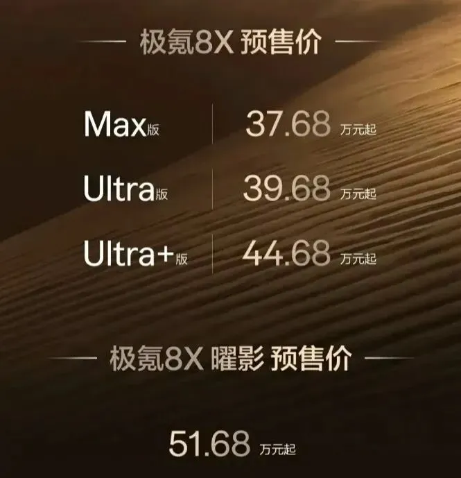 中大型新能源SUV市场内卷加剧,极氪8X以37.68-51.68万元预售价格登场,发布会反复强调的新公路之王。