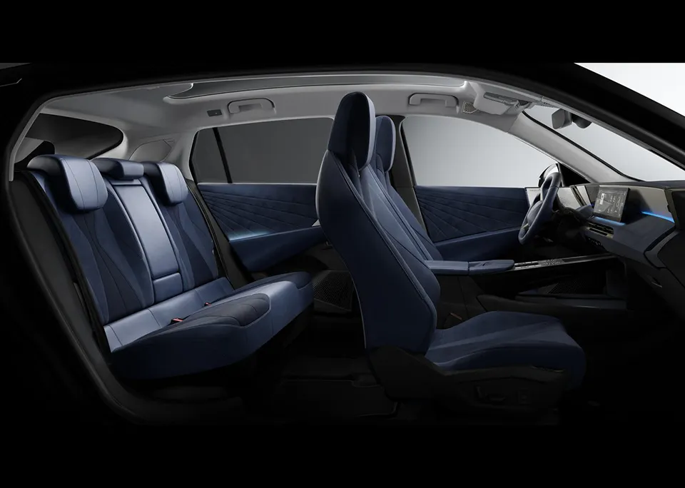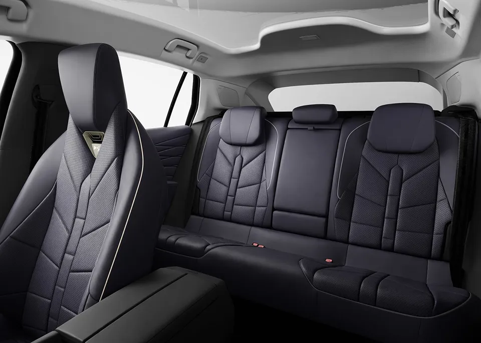 这次他们似乎听进去了。后排车门加长了,侧窗面积增加了30%,全景天窗也大了40%。官方说法是,头部空间和腿部空间都照顾到了,而且因为玻璃面积大,后排不会压抑。