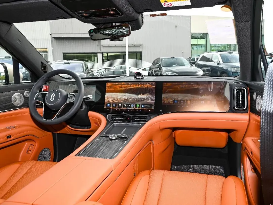 极氪9X直接装了两颗8295芯片,多屏联动完全不卡顿,16英寸副驾娱乐屏也是标配,想要更大的后排娱乐屏,再加1.5万就能安排。