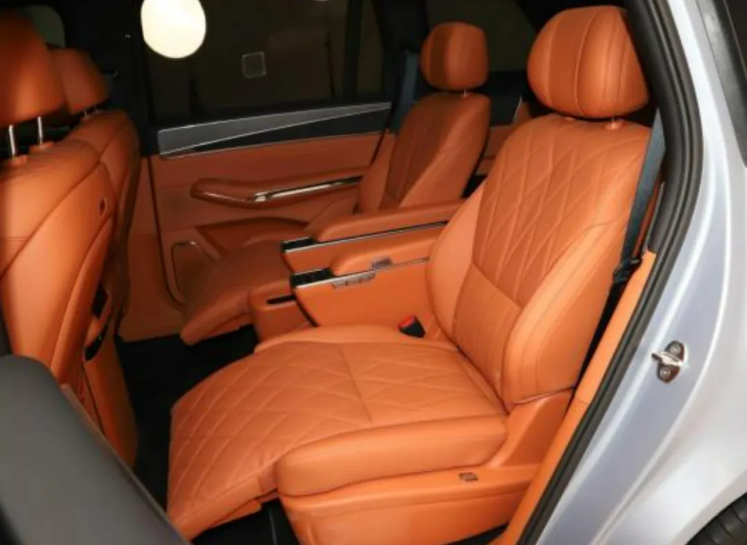 第二排.是2+2独立座椅,这个真的有.点商务MPV那个味.儿。带腿.托,一键.躺平,还.有小.桌板、折叠大屏、车载冰箱。说实话,这已经不是家用SUV思.路.了,这是奔着行.政级去的。第.三排还能电动.调节,还有加.热,这个在这个级.别其实挺少见。空间是真的夸张,不是那种参数大,是真.正能.坐.人的那.种大。
