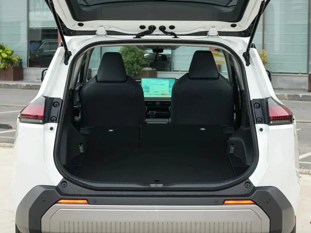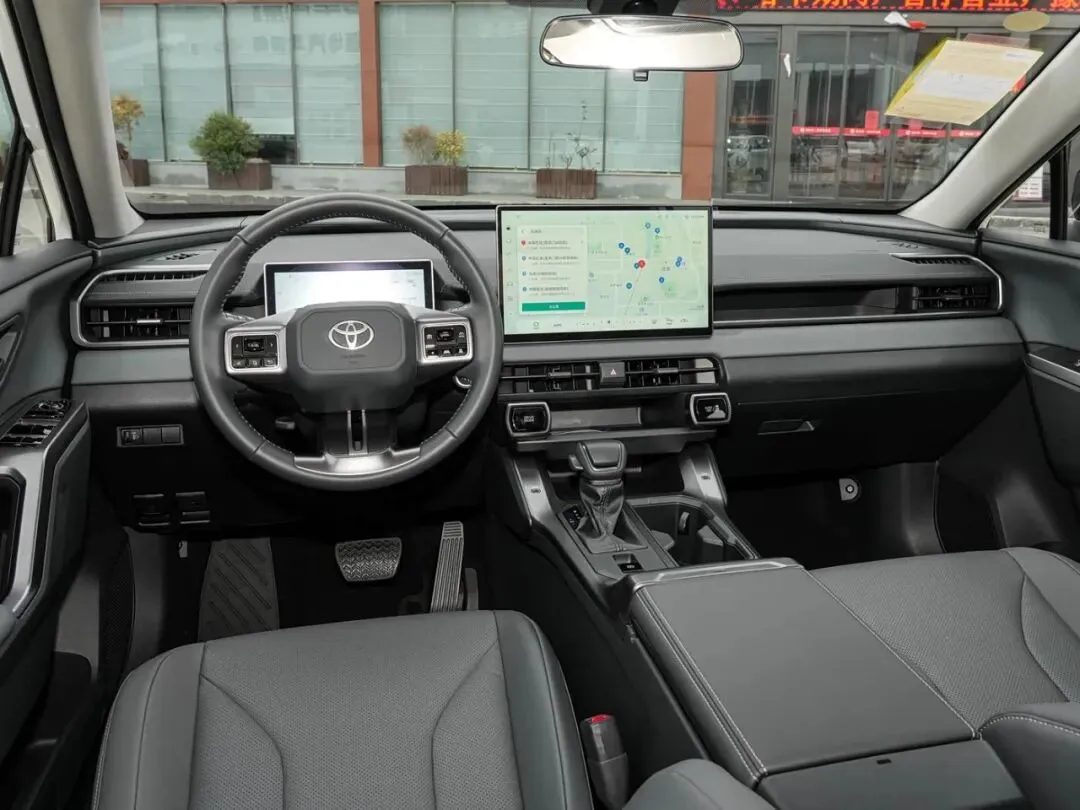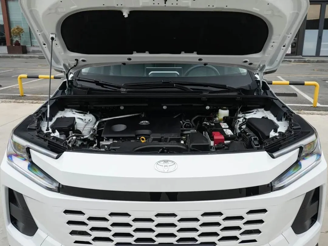 先来说说外观吧,这台车的实车看起来比照片上要更大气一些,整体的车身线条十分硬朗,前脸也采用了丰田最新的全球设计语言,C型大灯搭配镂空蜂窝中网看起来非常有运动感,侧面和尾部的线条也很犀利,18寸轮毂做了灰色哑光处理,宽大的后包围再配上银色防擦护板,让整台车显得野性十足。