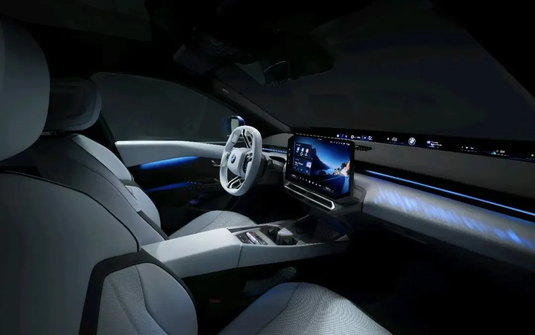 如果说外观还能看到宝马设计的经典传承,内饰则采用了完全颠覆的全新设计-全景iDrive科幻座舱。宝马取消了传统仪表盘,采用了 43.3英寸视平线全景4K投影,与17.9英寸平行四边形中控屏,未来感十足,在搭配上创新设计的方向盘造型,使内饰设计像极了概念车。