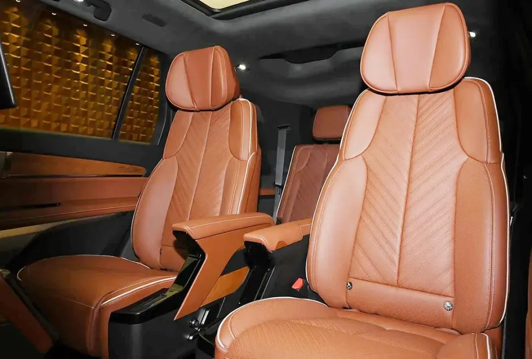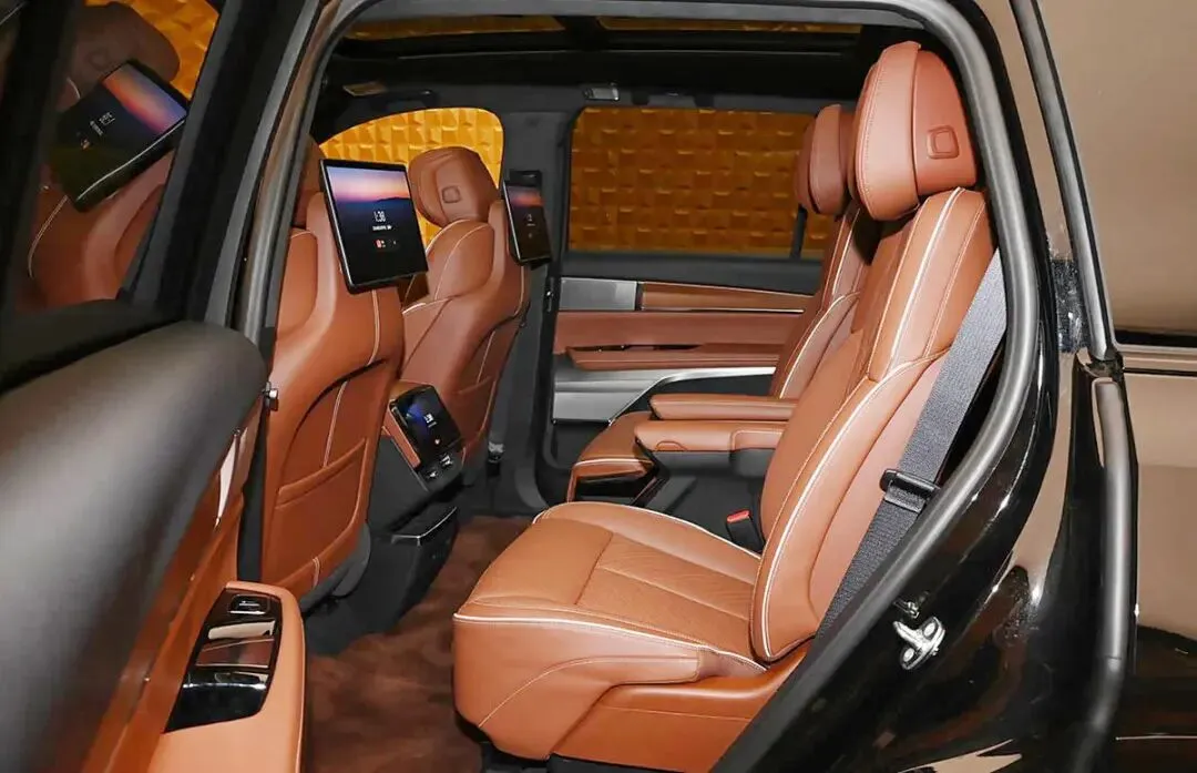 后排也没怠慢,三块屏到位,前排靠背各一块,中央扶手箱后再来一块,视频娱乐会议都行,出风口布置更细,扶手箱后有,B柱上也有,夏天不闷,冬天不冷,这回乘客挑不出毛病