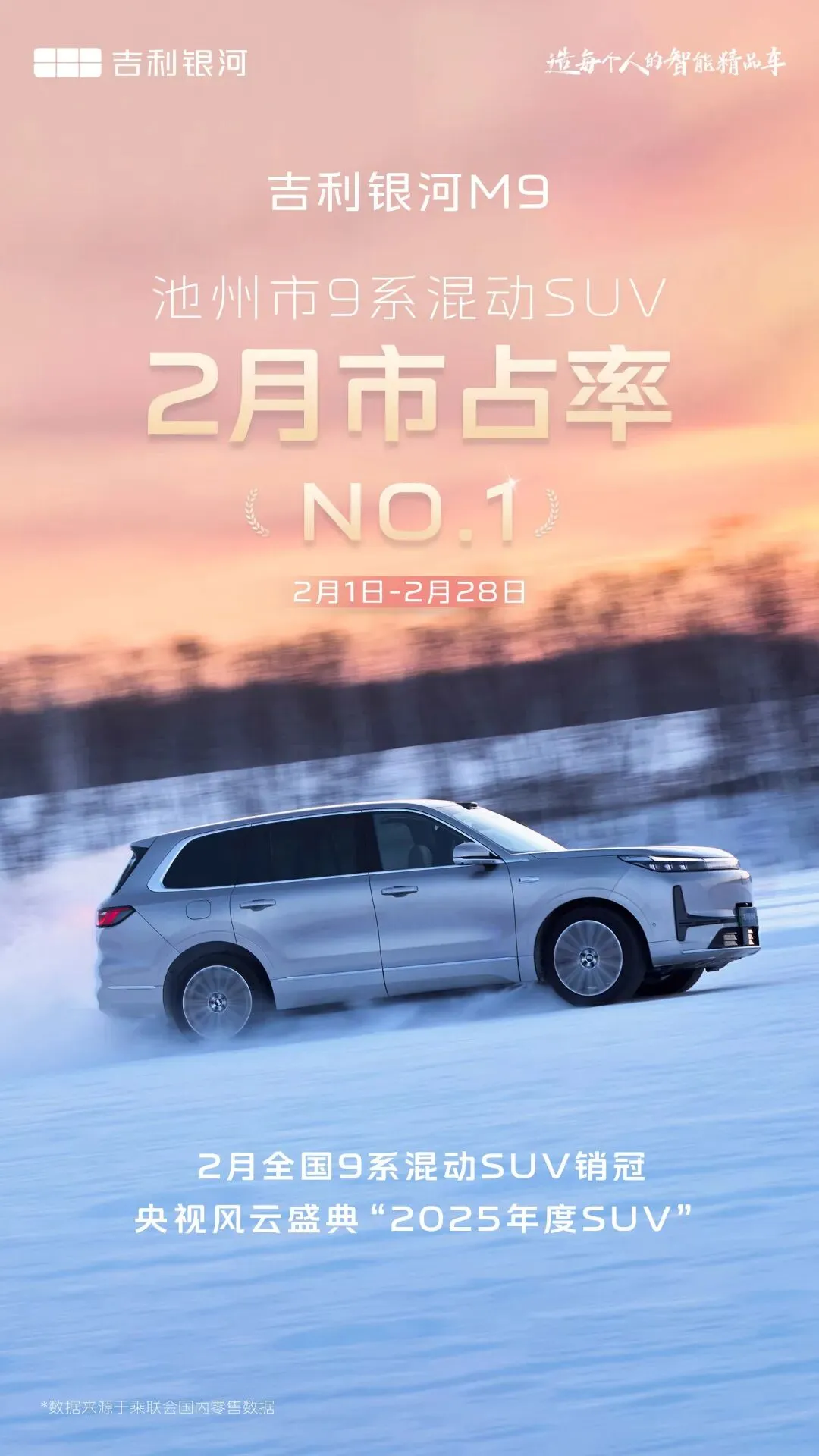 >【吉利银河|池州神狮】池州市9系混动SUV2月市占率NO.1