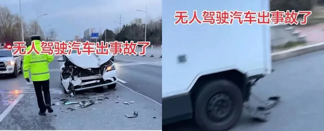 从现场视频来看,小轿车的车头受损严重,引擎盖翘起,显然是遭遇了不小的撞击。无人驾驶车车尾部分受损。