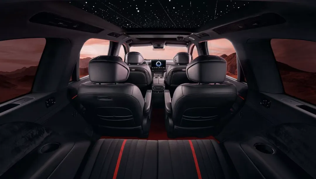 内饰的巧思更见功力,岚图泰山黑武士版在大面积丹墨底色中,仅在座椅缝线与头枕处点缀朱砂丹红。墨晶璀璨按键选用高品质黑水晶材质,采用钻石切割工艺打造。更有意思的是,新车的星河天幕星空顶采用与百万级豪车同源的星空顶工艺,598颗灯珠如星点密布穹顶。