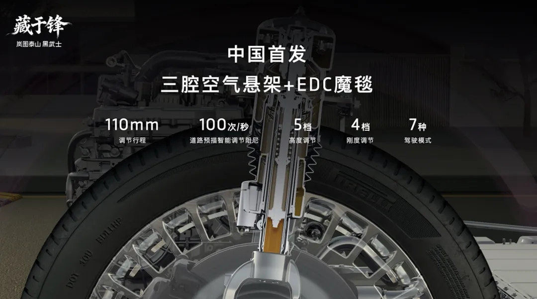 与此同时,岚图泰山Ultra版搭载中国首发三腔空气悬架,配合EDC魔毯底盘及双向16°后轮独立转向技术,带来更好驾控稳定性。