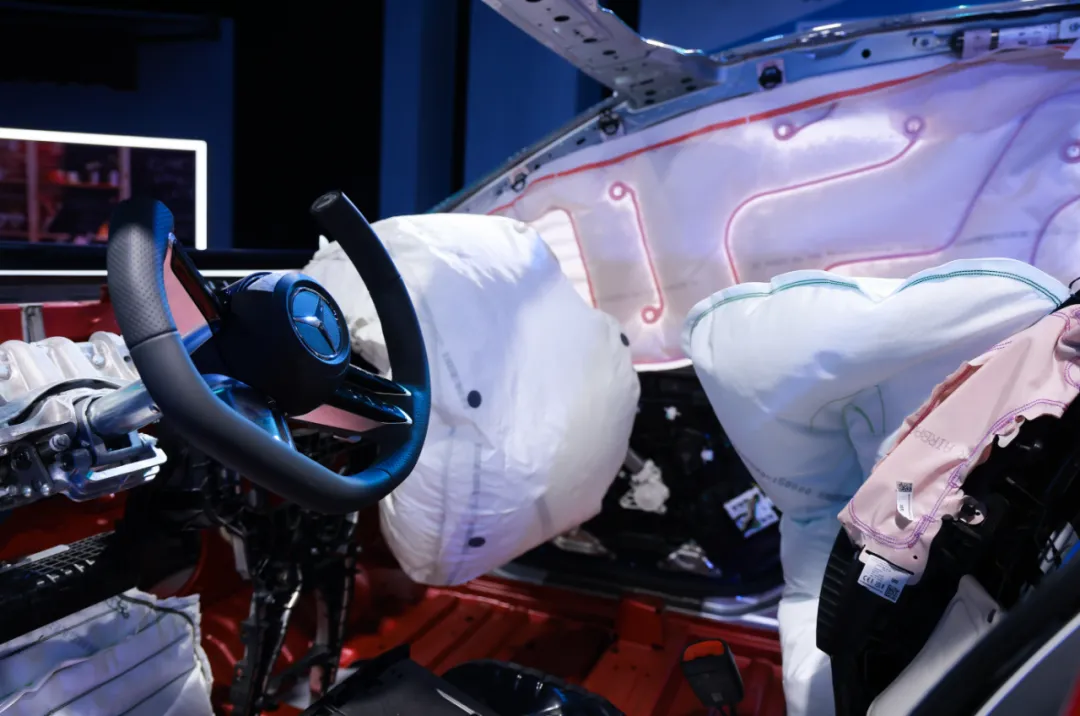 最让人印象深刻的,是EQE SUV对于主动安全方面的考虑。对于Pre-Safe预碰撞系统,除了可以在侧向碰撞发生前,将座椅向车辆中心最多移动50毫米的座椅侧碰保护功能,想到人的脑袋在发生碰撞之后产生的嗡嗡声,奔驰还研发了听力保护功能。