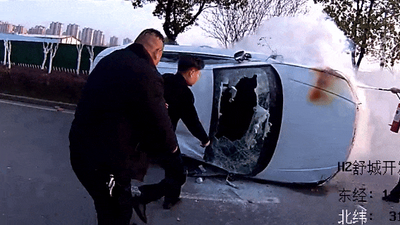 与此同时,杨荣子向群众借来一把水果刀,与路过的森警大队辅警赵磊、交管大队辅警涂寿宝一同钻进车内,不顾玻璃划伤,将困住驾驶员的安全带割断。警民合力将驾驶员从车内救出,转移到安全区域。