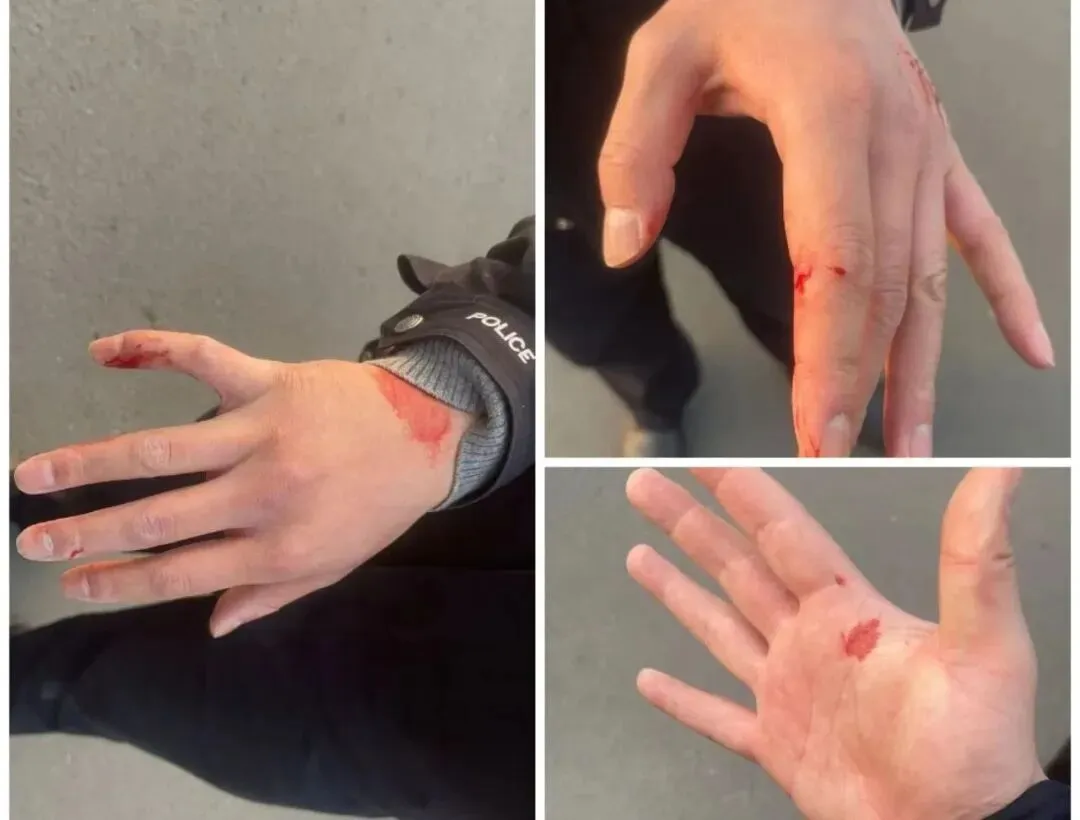 只有三名辅警手上真实的伤口。