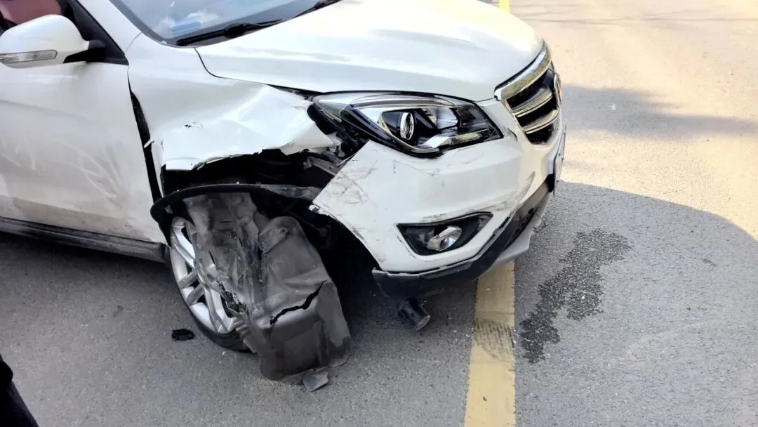 碰撞发生后车辆横停在了道路中间,车辆右前方损毁严重,路侧护栏也被撞坏,车上两名乘客在碰撞中轻微受伤。但值得庆幸的是,因驾乘人员均规范系好了安全带,事故并未造成更严重的后果。