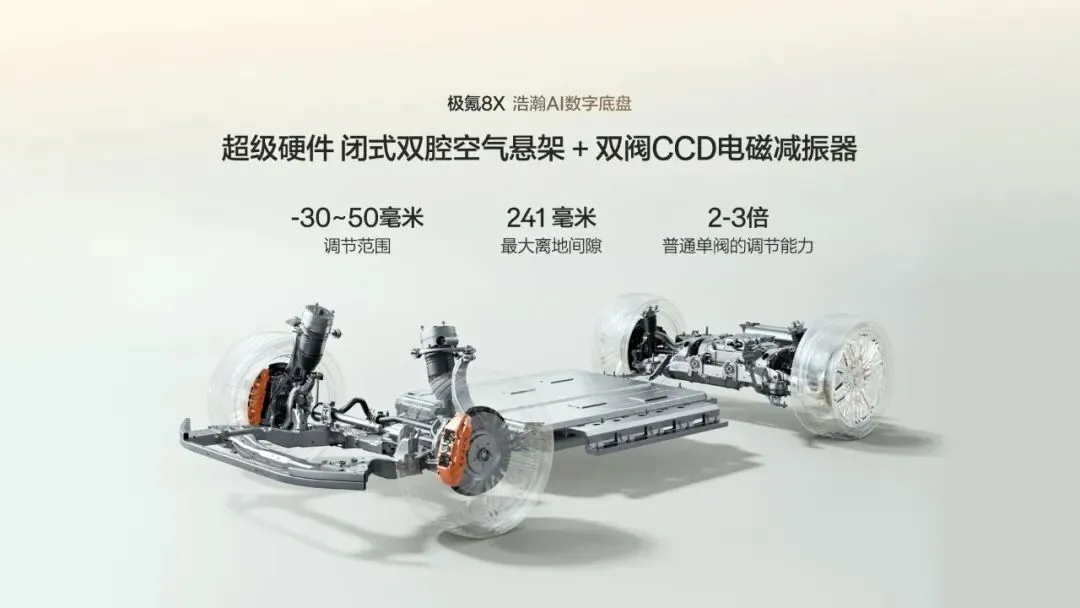 极氪8X的竞争力,并非来自品牌溢价,而是全域自研的技术硬实力。新车依托浩瀚架构,搭载SEP浩瀚超级电混、浩瀚AI数字底盘、浩瀚安全盔甲、千里浩瀚G-ASD辅助驾驶四大核心能力,实现性能、操控、安全、智能的全维突破。