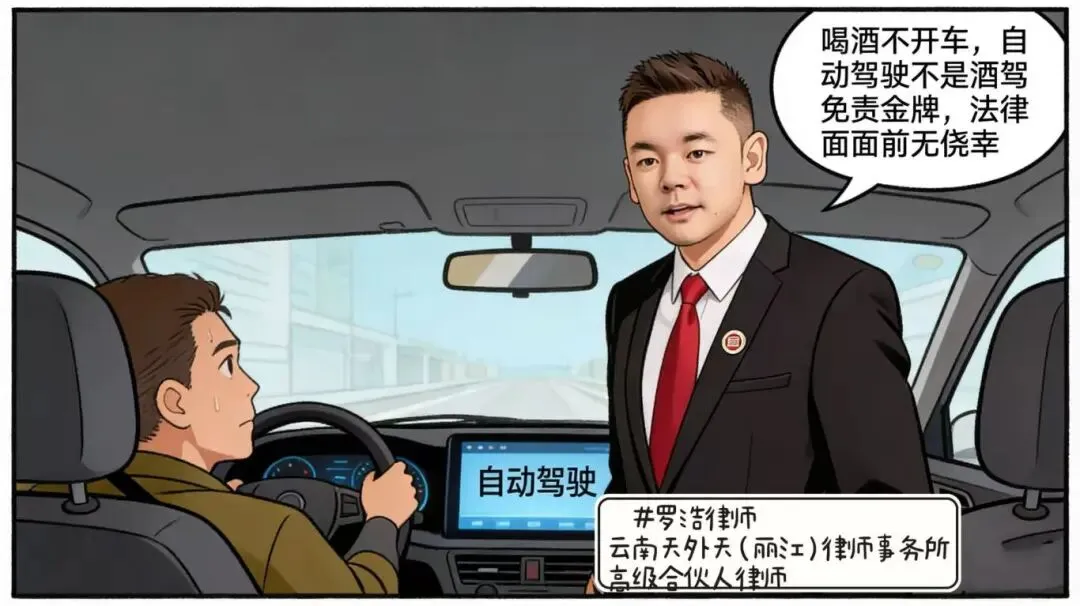 今天,云南天外天(丽江)律师事务所刑事团队罗浩律师,依据《道路交通安全法》《刑法》及最高法指导性案例,给大家一次性讲透:醉酒后自动驾驶,照样算酒驾、醉驾!