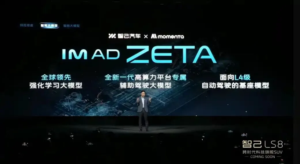 配置上将首搭智己超级智能体,集成了线控底盘、智舱AI千问大模型、L4级辅助驾驶大模型IM AD ZETA,后者与Momenta联合开发,官方称比现有IM AD大模型参数量提升3-4倍。
