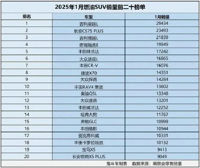 说实话,这数据我第一反应是“不可能”。长安CS75 PLUS在SUV圈混了快十年,口碑稳如老狗,结果被博越L一记重拳打懵。19363辆对14219辆,差距比你我之间的奶茶钱还多。更绝的是途观L,12477辆本该冲进前三,却被瑞虎8的11084辆挤到第四。这操作,简直比你双十一凑满减还离谱。