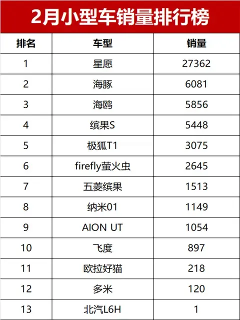 2月小型车销量:星愿狂揽半壁江山