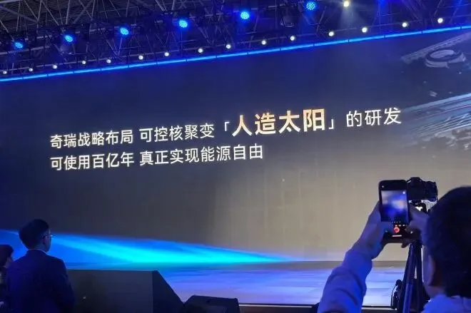 此次电池之夜, 奇瑞发布8大技术:风-光-氢-氨-储-充-换-放,6大场景:车-储-充-网-云-碳,6大产品:能量魔方、SOFC燃料电池、迅龙秒充、虚拟电厂、PEMFC燃料电池、V2G智慧充电桩。并宣布投入可控核聚变的研发。