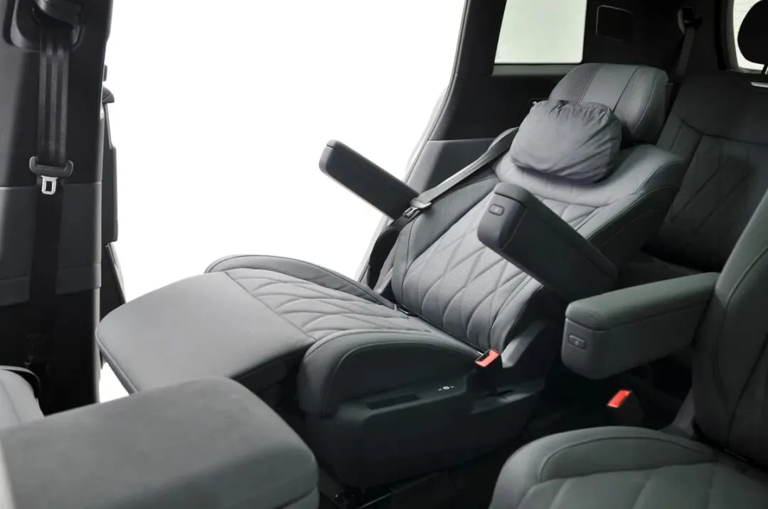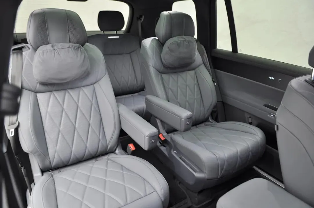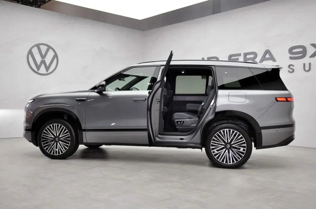 合资品牌是把双刃剑,既受益于海外,又受制于海外。上汽大众的转身速度在国内合资车企中是快的,而且几乎时刻都在掌握主动权。从2005年开始的帕萨特B5.5,到2008年北京车展亮相的Model X(也就是Lavida朗逸),以及后来的Lamando凌渡、Viloran威然等等,每款新品都展现出了创造力,还收获了不俗的销量和口碑。2024年开始,依托德国以外最大的研发中心VCTC(大众汽车中国科技公司),上汽大众大众品牌进一步将德系精工和中国创新融合,率先打造了今天的主角:ID.ERA 9X,一台德系满级旗舰SUV。不看参数,只需要站在车前,就能直观感受到ID.ERA 9X的大尺寸。ID.ERA 9X的车身长宽高分别为5207mm×1997mm×1810mm,轴距3070mm,和大众品牌最大的SUV途昂相比,ID.ERA 9X更长、更宽、更高,轴距也增加了90mm,视觉上比途昂大了半圈。其实外观没有什么可说的,ID.ERA 9X有着千人千面的状态。其它友商的产品也同样如此,外观上不谈谁好看谁不好看,只看对于自己品牌的意义。ID.ERA 9X的设计思路是大众品牌从未有过的,极简的美学和工程性能深度融合。具体来说就是在保证车身比例的基础上做减法,比如镀铬装饰在这台车上几乎消失,看不到来自车身不自然的光线散射,反倒衬托出了原本的曲线和上乘的造车工艺。大众品牌的车很奇怪,无论它是什么前脸造型,第一眼看过去就知道它是一台大众品牌的车,ID.ERA 9X也同样如此,第二眼就知道了它是一台大众品牌的SUV,第三眼就确认了它是一台大众品牌的新能源SUV。风阻系数,这个词在大众品牌的车型上很少提及,但是ID.ERA 9X用上了。ID.ERA 9X的风阻系数为Cd0.253,这在同级别的大型增程SUV是绝对领先的。这个数字是用什么努力换来的呢?据官方披露的信息显示,涉及到风阻优化的项目一共有15项,包括了空气动力学护板、A柱优化、空气动力学轮毂、流线型前唇、前盖优化、流线型车顶等等,这些改进让风阻系数降低了0.106,同时续航里程增加了53km。不仅如此,通过整车风阻优化,让ID.ERA 9X高速状态下的行驶稳定性有了一定的提升。TC君认为ID.ERA 9X的一个配置可以提升外观视觉上的气场,如果将智能底盘悬架调节设置为“极限通过”,那么150mm超大行程的双腔空气弹簧将向上调节80mm至最高位置,停在眼前的ID.ERA 9X的压迫感变得更大。除了“极限通过”,智能底盘还有“轻松进出”(向下调节行程40mm)、“轻松通过”(向上调节行程50mm)、“轻松载物”(后悬架向下调节行程70mm)。值得一提的是,当设置为“自动轻松进出”,车辆将在即将下车或接近导航目的地时自动降低悬架。“自动轻松载物”时,驻车情况下打开后备箱,后悬架会自动降低。需要注意的是,后悬架降低的同时,开启的后备箱盖也会同时降低,容易磕到头部,别问TC君是怎么知道的......ID.ERA 9X轴距比途昂长了90mm,但是车身长度却并没有增加得特别明显,只有49mm。这说明ID.ERA 9X的前后悬缩短了,而且轴距用在车内空间上的有效占比提升了。的确,作为一台三排六座车型,更好的车内纵向空间比横向空间更重要。得益于行云智能底盘的合理布局,在底盘配备了65.2kWh的大容量电池和前后双电机后,仍能在保证车辆通过性的基础上,减少侵入车内空间的范围,可以更加合理地为乘员舱布局,容下了没有缩水的冰箱彩电大沙发,打造了云栖智舱。首先看车内的空间。ID.ERA 9X每一排都拥有厚实的座椅靠背,让每一位乘员都能享受到乘坐的放松。ID.ERA 9X的副驾驶座椅和第二排右侧座椅都能通过侧面按键一键切换为零重力座椅模式,只不过这两个零重力座椅模式不能共存,这呈现出了不同的使用场景:副驾驶的零重力座椅,是前排两人聊天的场景;通过电动分解副驾驶座椅,为第二排右侧的零重力座椅提供了更好的腿部空间,这说明驾车人需要“闭嘴”,只需要做好司机的角色即可。值得夸赞的是,ID.ERA 9X第二排车门至少80度开启角度,让老人和孩子有了更从容的上车姿态,也能够方便装卸大件物品。在经过多次上下ID.ERA 9X的第二排之后,TC君认为如果在B柱或者前排座椅后部增加扶手,老人在上下车的时候会有东西抓握,能通过扶手借力,减少摔倒风险,不然只能抓握前排座椅头枕和靠背,不仅不牢靠,还影响前排的乘坐体验(后排上车时对前排座椅的抓握产生晃动)。ID.ERA 9X的第二排还有一个变化,TC君之前在微信朋友圈里也提到过,就是终于将第二排安全带集成到座椅上了,这也是上汽大众大众品牌三排座车型在安全性上的重大进步。此前都是将第二排安全带放在C柱上,这在紧急情况下会造成安全带对乘员颈部的意外伤害,同时安全带也不能起到更好的束缚作用。第二排还有一个亮眼的配置,ID.ERA 9X在车门内饰板上配备了Smart Surface魔术屏。此类的方案,TC君在大陆集团2023年中国技术体验日看到过,当时是由大陆集团康迪泰克用表面解决方案透光材料(XpreshnHylite Concept)打造的车门智能驾趣面板(Panel Concept)。它在内侧集成了先进的触控和人机交互技术,在减少物理按键与传统按钮的同时,优化了车内空间设计,这成为了汽车内饰未来的一种发展趋势。它和极氪009、沃尔沃EM90的配置相似,但是ID.ERA 9X的显示屏实现了从单色到多色的跨越,画面更加真实美观,而且触感更加灵活,并以木纹内饰板进行装饰,品质感一下子就出来了。第二排中间的过道有大约20cm,为第三排乘客上下车提供了除折叠前推第二排座椅外的更便捷动线。这个过道本身因为底盘的