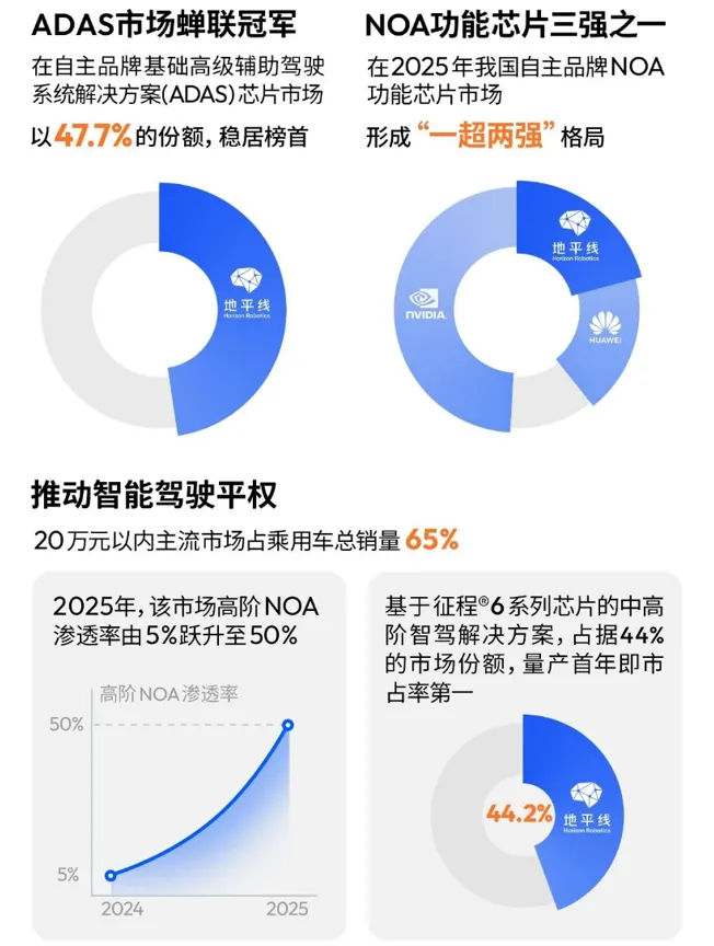 2025年被行业视为高阶智驾(NOA)的普及元年,地平线在这一年实现了里程碑式的突破: