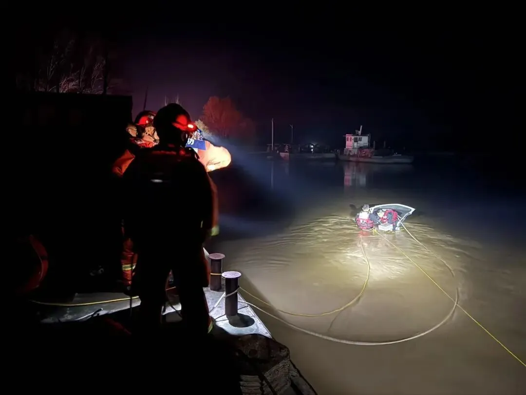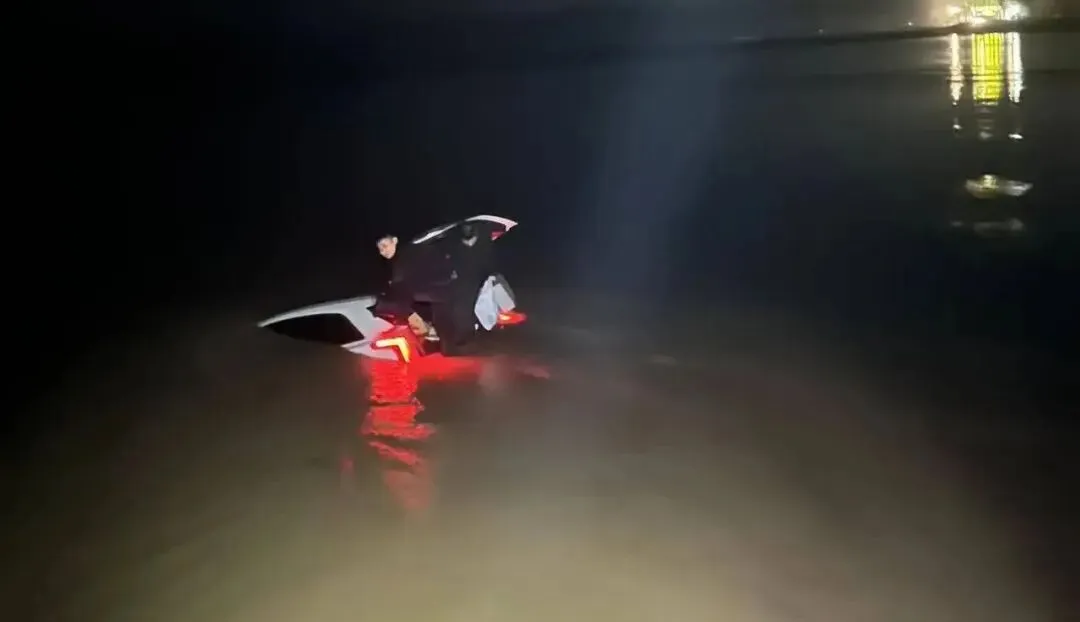 经核实,事发时,两名山东籍男子驾驶一辆凯迪拉克XT5轿车来河南办事,刚行驶上昆岳黄河浮桥不久,因夜晚天色黑视线差,加之驾驶操作不当,车辆失控径直冲入黄河。受黄河湍急水流推动,落水车辆向下游漂流约80米,最终在距离黄河岸边20米左右的位置搁浅,此时车辆车头已逐渐下沉,随时有完全沉没的风险。危急关头,车辆后备箱自动开启,两名被困人员借助开启的后门紧急避险,并及时拨打报警电话求助,为救援行动争取了关键时间。