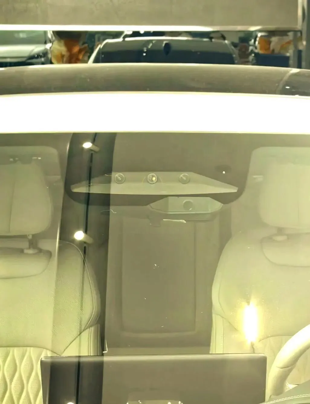 我当.时特意趴在前挡那看了一下,中间那个.三.目模组还挺明显的,不仔细看还.以为是个行车记录仪。