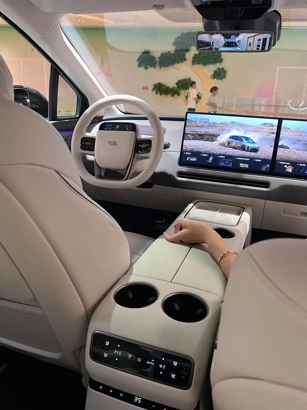 外观就是那种典型家用.取向,大.尺寸格栅,然后侧面线条比较平.直。说实.话.不算惊.艳,但是耐看。6座是2+2+2布局,我180坐第二排,腿部空间.非常非常.充裕,真的是能翘二郎.腿那.种。然后第三排我也试了,不是那.种“应急板凳”,正常.成年人短.途完全OK。