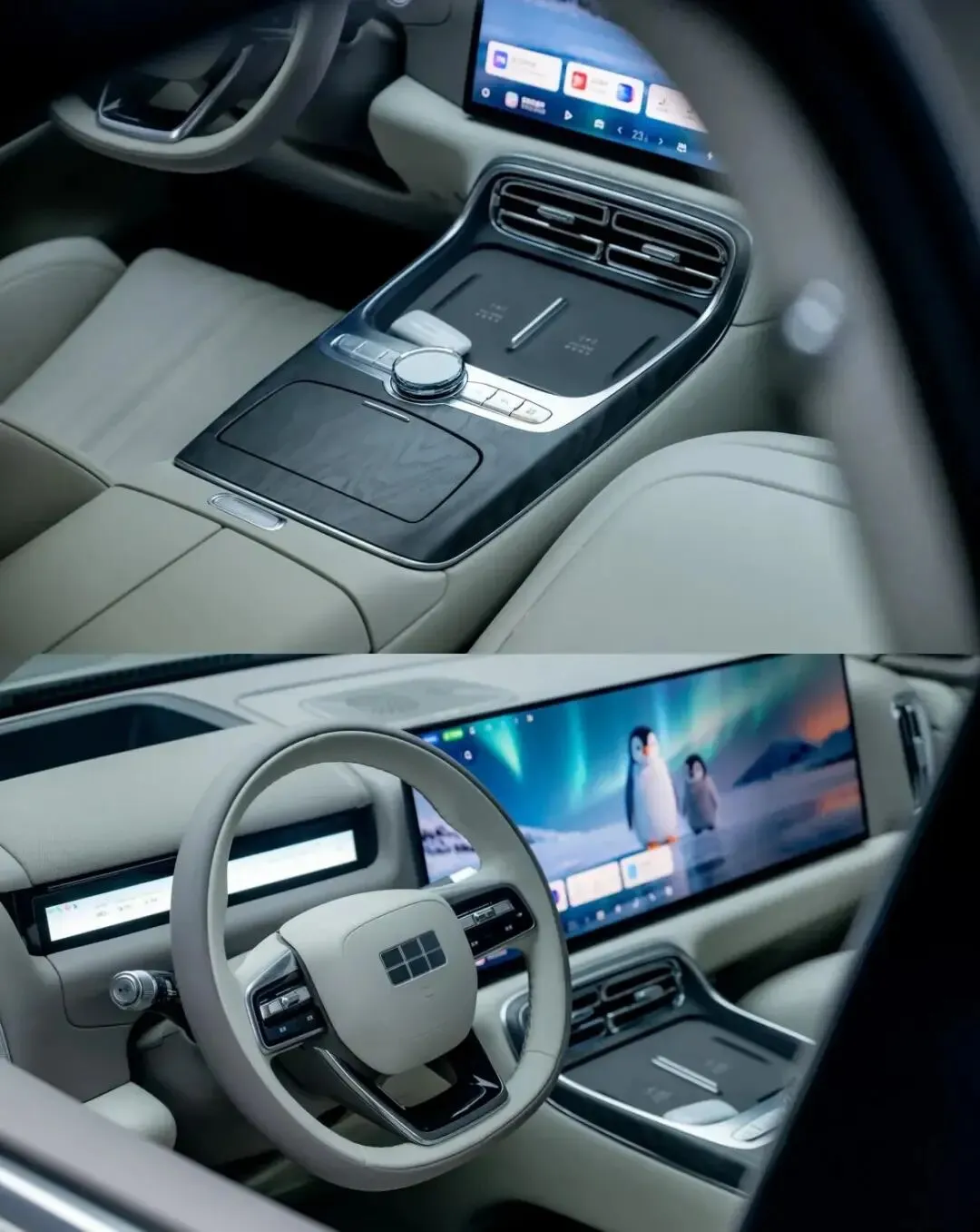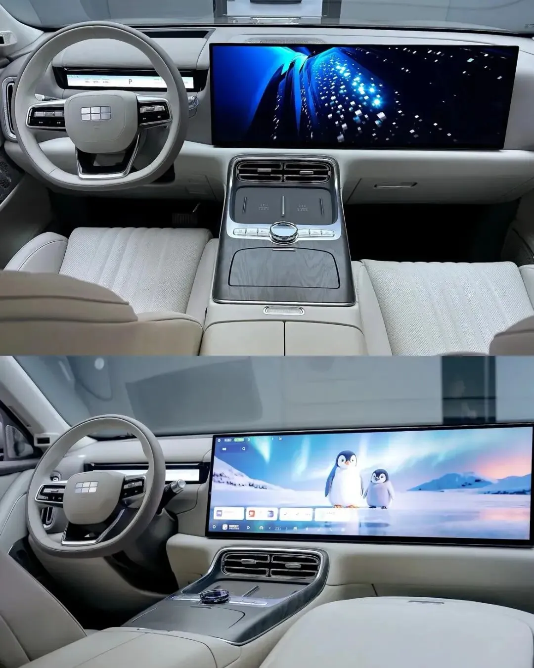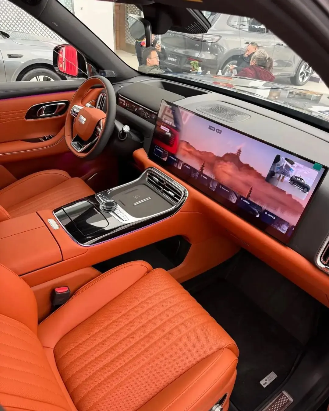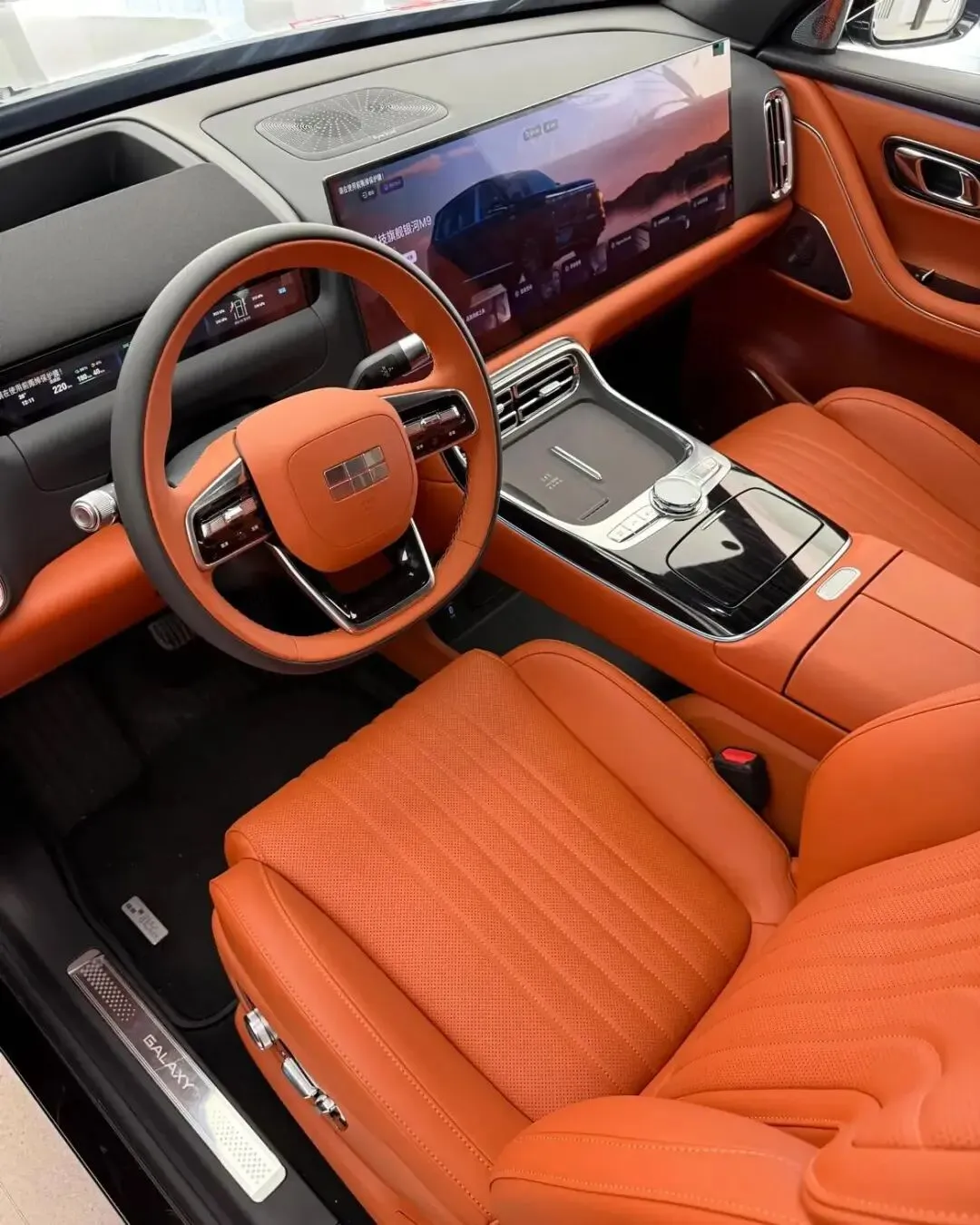 内饰与智能配置是银河M9的核心亮点。座舱搭载30英寸6K一体屏+12.66英寸仪表+32英寸AR-HUD+17.3英寸二排吸顶屏,四屏联动带来沉浸式交互体验。车机搭载Flyme Auto系统,搭配高通骁龙8295P芯片,操作流畅度媲美旗舰手机,支持多音区语音控制、方言识别、模糊指令响应,无需动手就能操控车窗、空调、导航等功能。