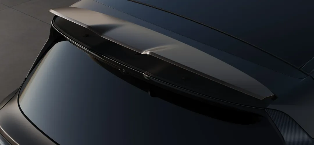 外观的高亮件熏黑,比如格栅、窗框、后视镜罩。比较有趣的是弄了个电动尾翼。从对比图看,是比较克制的风格,没有很夸张,周边件也没有改动。