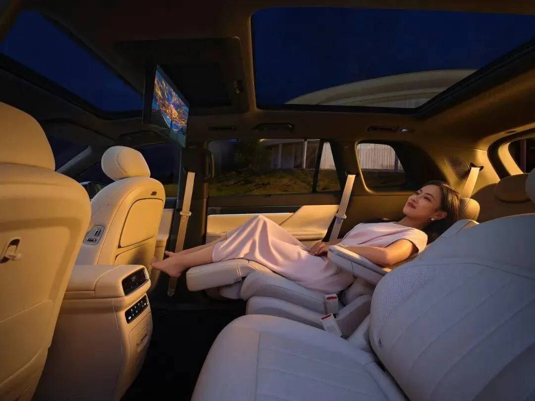 大沙发更是下了功夫。全车用料18平方米,仪表板、门护板都用云感亲肌超软材质包裹,手感细腻。座椅采用复合棉加高弹海绵,柔软度比传统座椅提升30%。六座版二排零重力座椅,一键躺平,腿托抬起,靠背后仰,10点式按摩一开,真有几分头等舱的意思。主副驾也有按摩功能,力度比普通气袋按摩深得多,长途开车腰不酸。五座版二排是电动魔毯座椅,腿托可单独调节,座椅靠背角度能调,可卧可盘可躺。