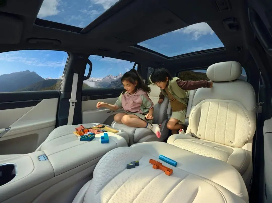 彩电方面,前排2.5K超薄中控屏,后排15.6英寸智能娱乐屏。孩子坐后排,打开动画片,一路不闹腾。后排屏还支持手势控制,孩子挥挥手就能切歌,省得老喊“妈妈帮我换一个”。六座版二排还有独立空调控制屏,老人怕冷孩子怕热,各调各的温度,不用互相迁就。