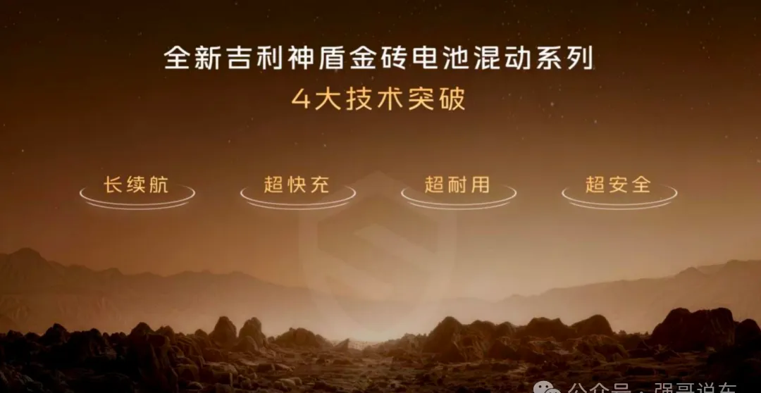 转到技术上。银河M7使用了全新的“神盾金砖电池”,光听名字就很有武侠小说里暗器的感觉。但是事实比故事更离谱。官方宣称其循环寿命为4500+次,并且搭配SEI膜自修复技术,基本上可以做到“电池寿命等于整车寿命”,完全消除掉插混几年之后电池残值腰斩的顾虑感。根据行业专家的评估,神盾金砖电池采用三元锂材料,在热管理及能量密度方面均优于同级主流产品。例如博越L搭载磷酸铁锂电池在低温环境下能效衰减43%,而银河M7官方数据为37%,工程师透露快充从30%到80%只需要15分钟,实际我们测试的数据是在16-18分钟左右浮动,并且和官方数据相差不大。目前只有特斯拉Model Y长续航版40万级别的新能源SUV才能与之匹敌。