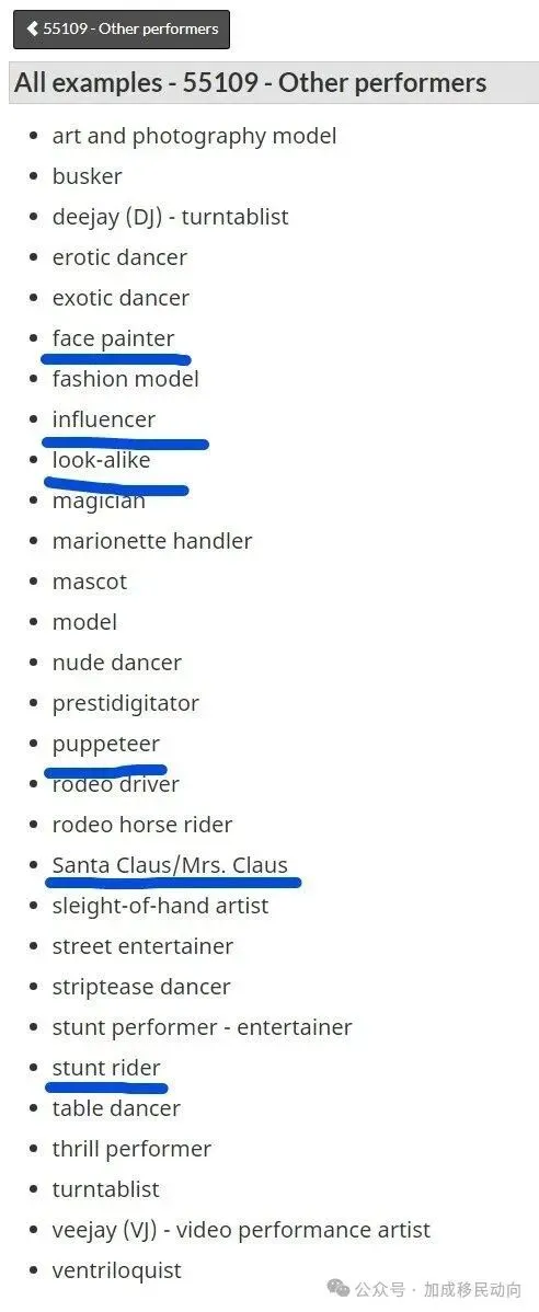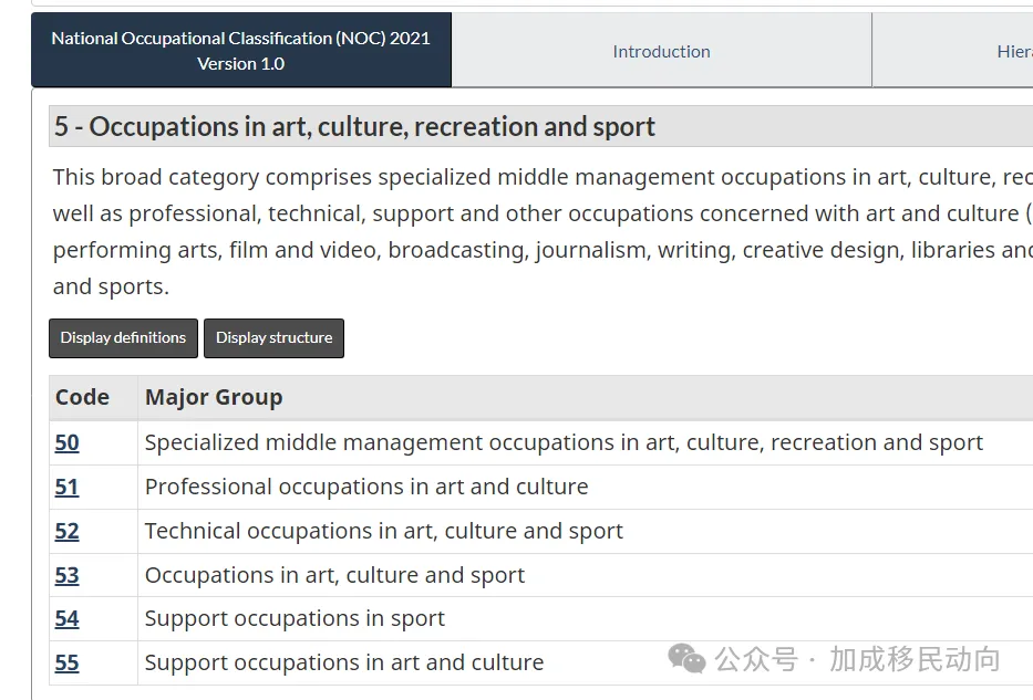 值得一提的是,移民局最新的职位编码列表(NOC code)已经更新并开始实施,其中详细列出了符合自雇移民基本要求的文化艺术领域职位。