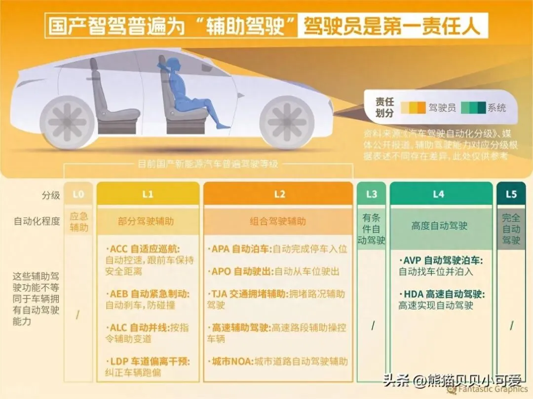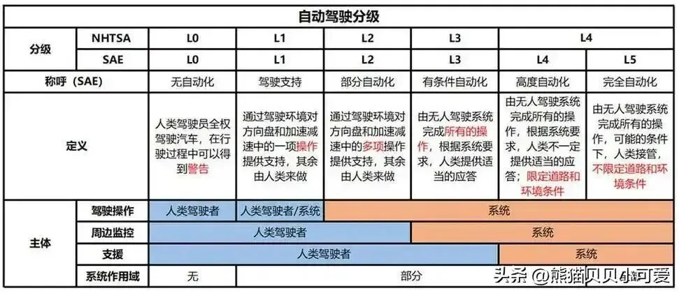 L0—L2:驾驶辅助,属于低级别的驾驶自动化功能,驾驶主体仍为驾驶员。