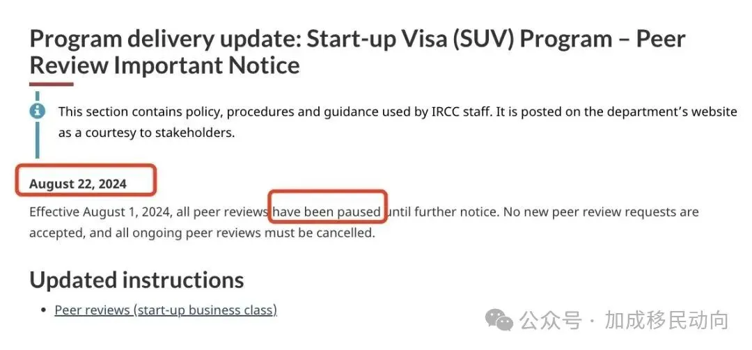 近期,加拿大移民局官网宣布了一项重要更新,关于其创业签证项目SUV(Start-Up Visa)中的同行评审程序全面暂停,直至进一步通知。这一决定意味着新的SUV同行审批请求将不被接受,且所有正在进行的同行评议流程也被取消,引发了广泛关注与讨论。