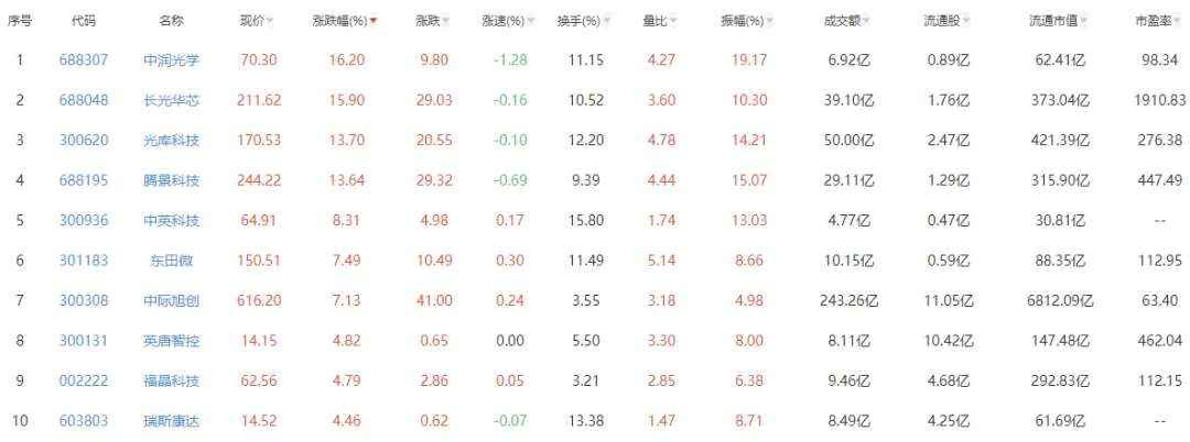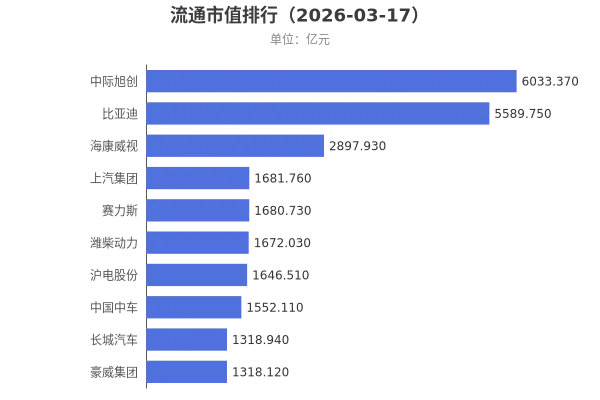 市值排名TOP5上市公司:中际旭创、比亚迪、海康威视、上汽集团、赛力斯。