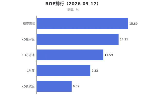 ROE排名TOP5上市公司:德赛西威、XD星宇股份、XD万源通、C星宸、XD贵航股份。