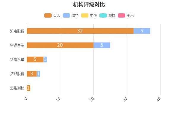 宇通客车近12个月10家研究机构出具的20份研报将其列为“买入”等级,5份研报将其列为“增持”等级。