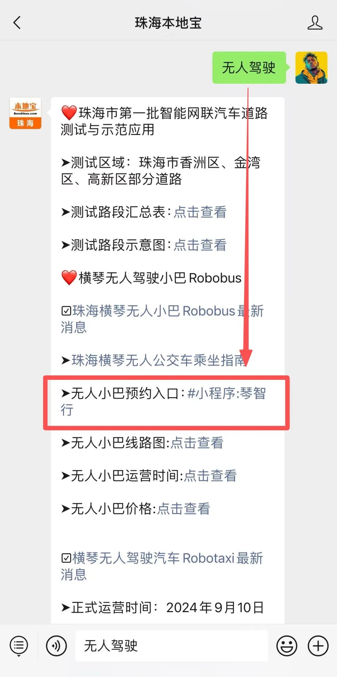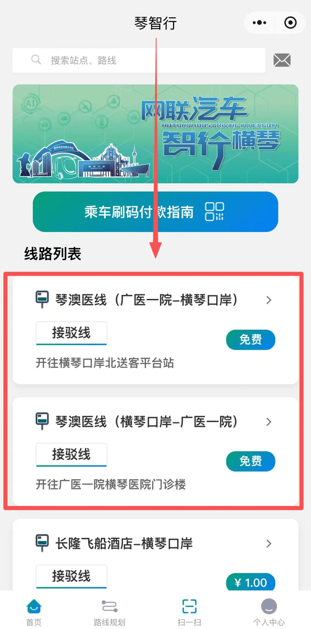 可获取“琴澳医线”自动驾驶小巴乘车扫码入口