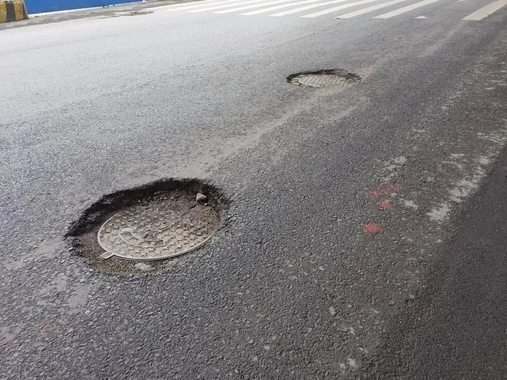 因为.井盖.突.然消失这个事,它真的.不是段子。前段时间广东.那边就有.车主,前杠被井.盖“咬”出一个.洞,听着都疼。你想象一下,正常开着,前面地面突然一个黑.洞,你.反.应不过来,真的是一瞬间的事。