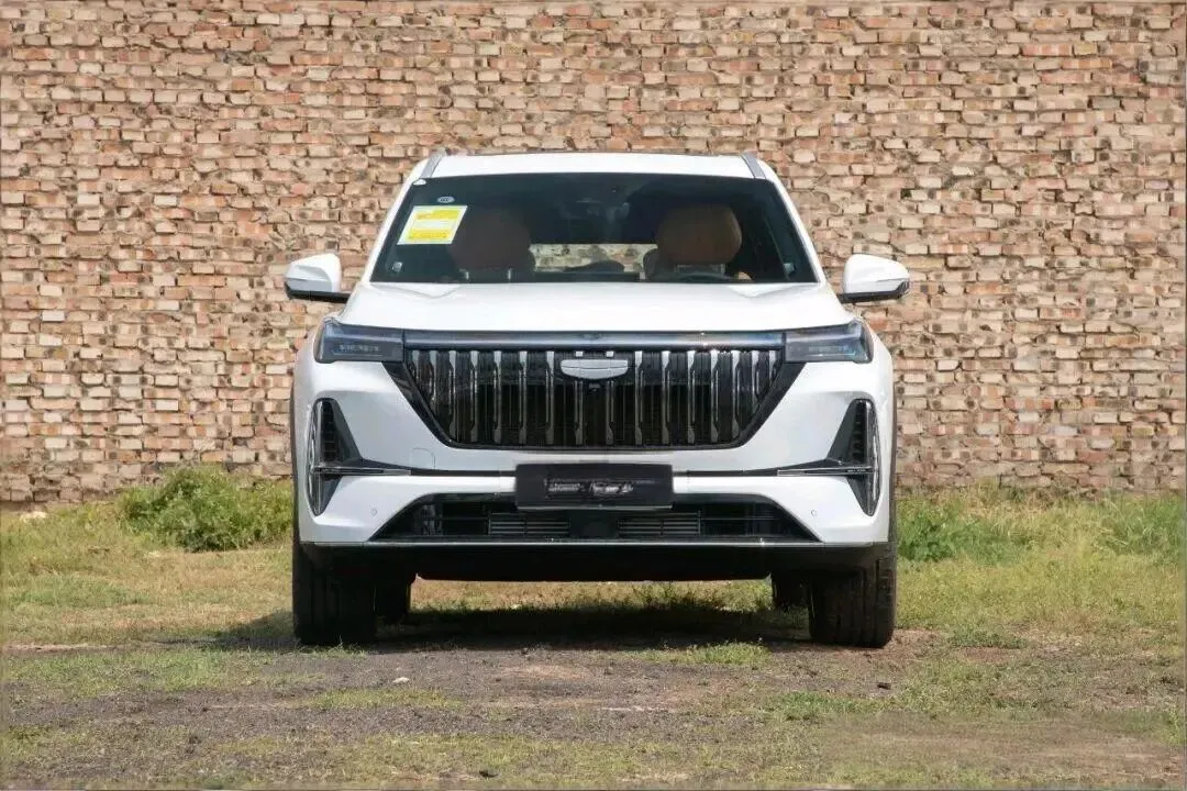博越 L 的外观走的是大气家用风格,前脸极具辨识度。贯穿式日间行车灯搭配直瀑式中网,中间镶嵌着吉利车标,两侧全 LED 大灯组形成贯穿式布局,下方 “八字形” 进气格栅让车头层次感十足。车身侧面,上扬的腰线与悬浮式黑顶设计相得益彰