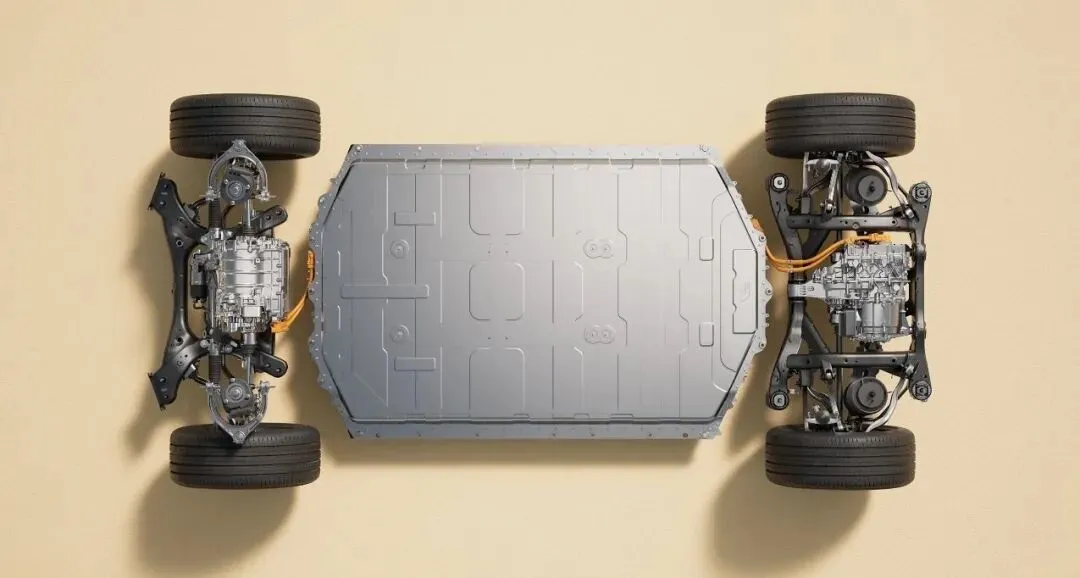 电池底部三重防护,先.是高强度铝合金护板,然后是类似桥梁桁架结.构的.加强,再.加上21毫米缓冲空间。21毫米听着不多,但在底.盘下.面.你能挤出这么一层吸能空间,其实.挺难的。我之前拍过一台车,底盘护.板薄得跟易拉罐一样,用.指甲一敲那种空响声,心里真没.底。