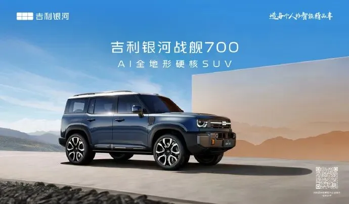 温馨提示:点击上方蓝字关注“电车报告”,或者添加微信公众号:evautoreport,每日收获最新最快最热门的精彩汽车资讯。如果您有好的原创文章或者独家爆料,请发邮箱mail@evauto.com.cn。3月20日,吉利银河官宣,吉利银河首款AI全地形硬核SUV正式定名为——吉利银河战舰700。据了解,这一命名采用“用户共创” 方式,源自全球用户征名活动。3月16日,吉利银河公开首款科技硬核SUV全球征名TOP10高频词,包括战舰、卫士、磐石、星际、浩瀚、安全、方舟、护卫者、征途、S900,最终确定新车定名为吉利银河战舰700。