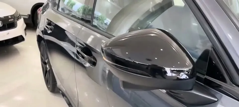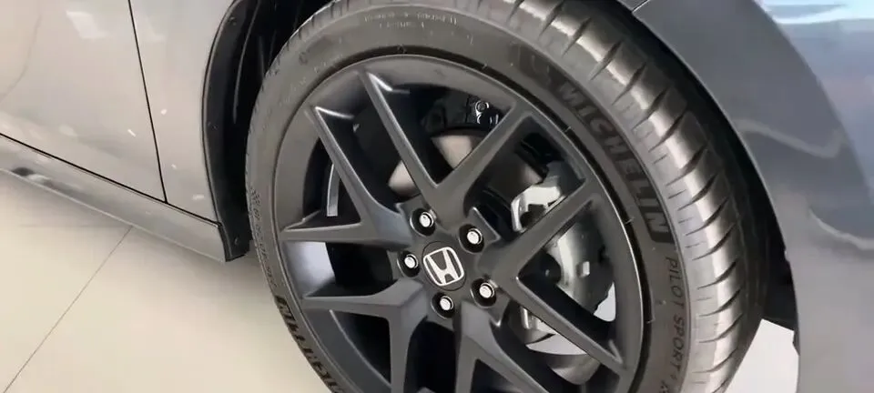 轮到侧面时,画面明确是“本田思域汽车黑色轮毂”,以及“本田思域汽车后视镜”。