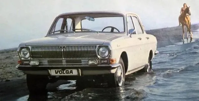 这个看着小高个的白色VOLGA,车头扁扁宽宽的,格栅像梳子齿一样密密排着,左边挂了个黑色反光镜,玻璃窗边都是镶银边,配个“VOLGA”大标志,不认识车标都能认出是哪国血统,这车可是能下田能涉水,悬挂高,底盘硬,发动机声浪听着和咱村拖拉机差不多,开出去被小孩追着看。