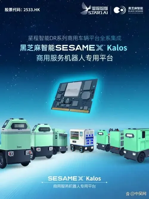 黑芝麻智能SesameX Kalos商用服务机器人专用平台,已成功实现规模化上车,被星程智能全线集成于其DR系列L4自动驾驶商用车辆平台中。