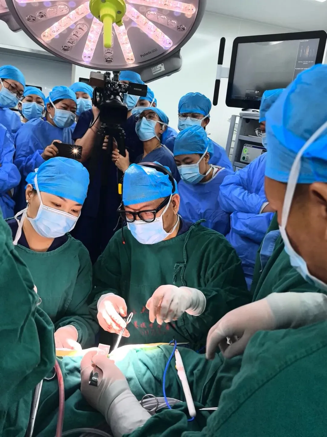 当天下午,备受瞩目的手术演示环节将培训推向高潮。学员们分批进入手术室,零距离观摩了由关小明教授与张春花教授联袂主刀的三台机器人手术: