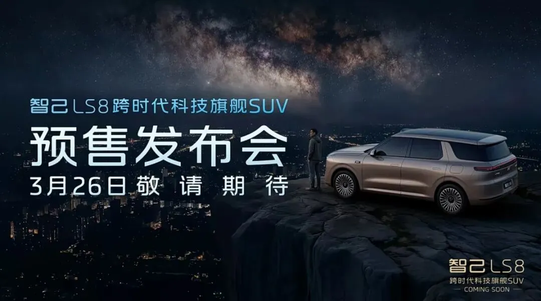 智己LS8是一款中大型增程SUV,6座布局,将于3月26日开启预售,首发搭载智己超级智能体。