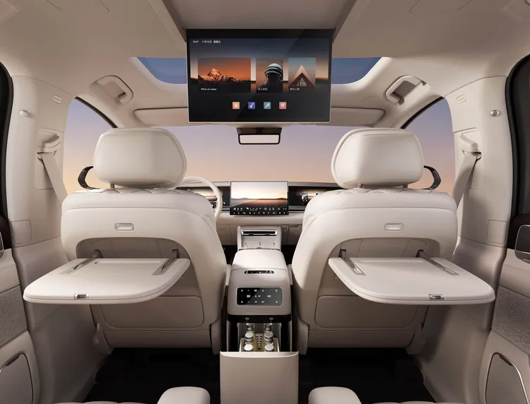 纯电双电机最大功率410千瓦,三电机版功率540千瓦,配备1000V平台+宁德时代115kWh大电池,CLTC续航720公里。增程版搭载1.5T增程器,双电机版功率300千瓦,三电机版400千瓦,配备800V平台+宁德时代80.3kWh电池,CLTC纯电续航500公里。底盘上还有双腔闭式空悬+CDC的加持。