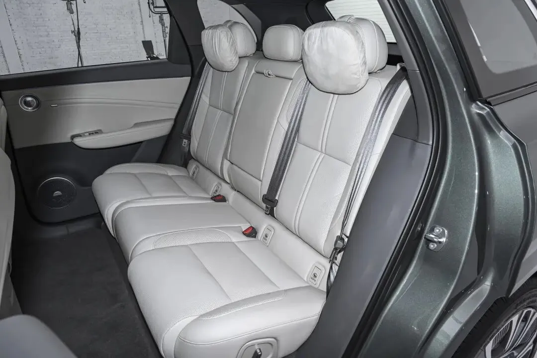 空间表现贴合中大型SUV定位。2925mm轴距带来充裕内部空间,我身高178,前排调到合适驾驶位置,头部还有一拳多空间。保持前排不动坐到后排,腿部有两拳多空间,头部也有一拳左右。后排坐垫长度够用,对大腿承托到位。